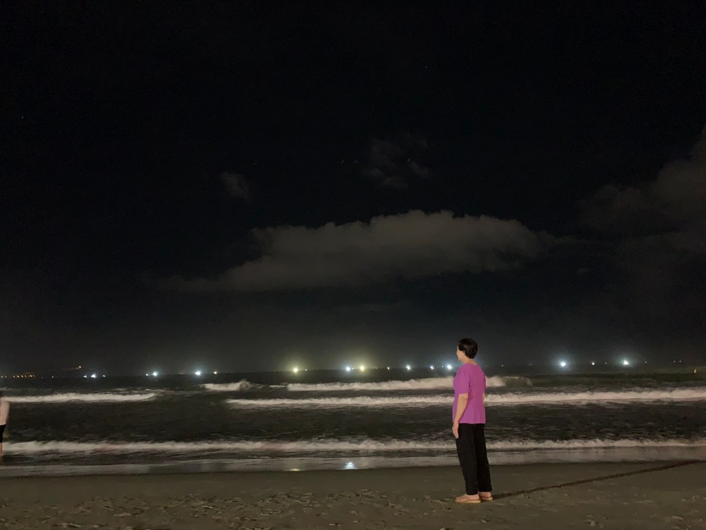 Lặng nghe tiếng sóng biển vỗ về bãi biển đêm, cứ xô đẩy nhau không dứt mà mẹ nó mô tả “nhìn như những bức tường thành trắng xóa”.