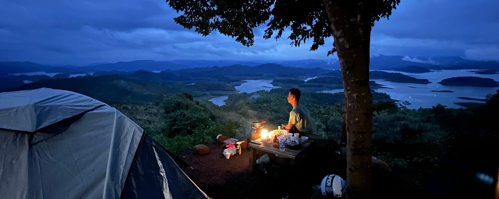 Khoảng 4h30 thì nó đã chính thức có mặt ở Tà Đùng, đúng kiểu du lịch, đi đâu cũng thấy quán cà phê view hồ…nhưng theo dự tính ban đầu đợt này đi “bụi đời”, đụng chỗ nào ok thì cắm.