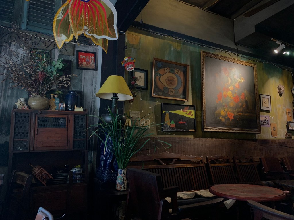 Quán cà phê nó ngồi lọt thỏm dưới chân cầu Thị Nghè 2, phải quẹo mấy con hẻm nhỏ từ đường Nguyễn Hữu Cảnh xuống khu vực dân cư bên con đường Trường Sa ôm trọn kênh Nhiêu Lộc. Bên ngoài hiên quán, đám sứ quân tử buông rơi như tấm màn che xanh mướt đan xen cùng màu hoa đỏ trắng, nhìn mát mắt, nó cũng đang trồng một tấm màn bằng cây cúc tần Ấn Độ ở nhà nhưng chắc còn phải chờ lâu mới được như này. Kiểu trang trí bàn ghế, tủ kệ “những năm hồi đó” của quán giờ không còn quá xa lạ với nó nữa, Sài Gòn dạo này nhiều quán theo kiểu retro này lắm. Nó chọn một góc hẹp, hơi bí bách đủ rồi chui vào ngồi được cái nhìn ra hướng cửa sổ, hóng chuyện rồi lén xem những người xung quanh đang làm gì…