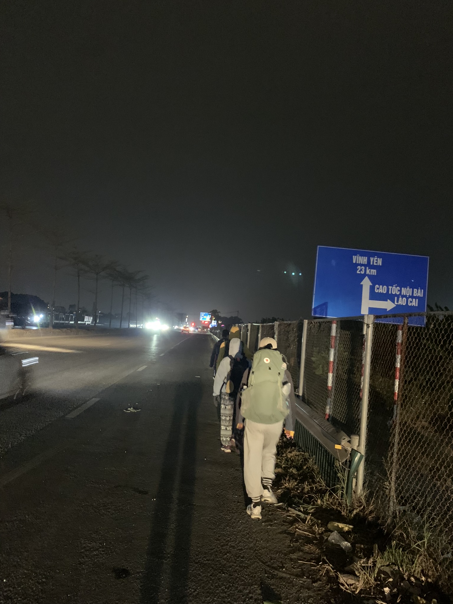 Nhìn qua chú Tân, vẫn còn cay cú khi bị đập tan dự tính đi tàu nhanh thăm thú Hà Nội trước khi lên xe đi Lai Châu. Định mệnh bất ngờ là 3 đứa xuống cùng lúc với 2 đứa còn lại trong khi 2 chuyến bay cách nhau mấy tiếng đồng hồ. Vừa xuống sân bay cả nhóm được chia sẻ vị trí và được yêu cầu đi ra điểm xe hướng Cao tốc Lào Cai đi Lai Châu, xe không đón ở sân bay. Nghe nói mỗi ngày chỉ có 2 chuyến đi Mường Tè Lai Châu nên nhà xe này hơi chảnh, nhận tin nhà xe 7h hơn mới tới nên tụi nó bắt taxi đi ăn chạy cách chỗ tập trung khoảng 900m ăn tối no bụng đã rồi tính sau. Vào quán, nó kêu liền dĩa cơm rang dưa bò, những cơn gió lùa vào trong quán, Hà Nội lạnh… Sau đó tụi nó đi bộ ra điểm tập trung, qua những chỗ bán bắp đêm bên đường làm nó nhớ chuyến xe 2h sáng cũng từ Nội Bài lên Sa Pa năm ấy, những chuyến đi đầu tiên đôi chân này được bước trên mảnh đất miền Bắc mà ngày xưa nó xem là một điều gì đó xa vời.