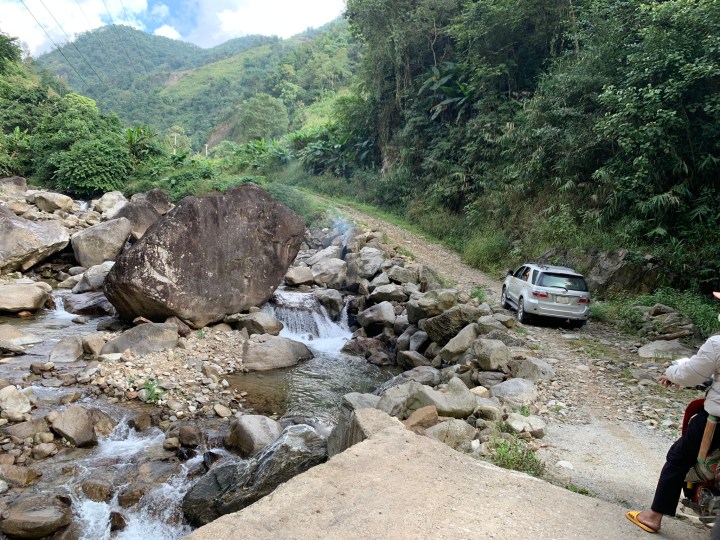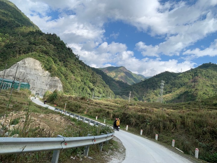Ăn xong tụi nó đi dạo xung quanh trong khi các bạn porter hỗ trợ đồ đạc lên xe. Chị tiệm tạp hoá nói mấy nay đông người leo lắm mà tụi em đi gì qua đó. Nó đùa đùa: tụi em chạy xe đạp, chị cũng đâu vừa: chạy xe đạp thì được 1km rồi về nó cười haha, cũng đúng từ Mường Tè tụi nó phải di chuyển 40km bằng xe máy tới trạm thuỷ điện Pa Vệ Sử, đường đi thì ối dồi ôi, khúc đầu còn đường nhựa sau đó thì offroad, có vài chỗ nó chuẩn bị tinh thần nhảy khỏi xe, bỏ bạn porter lại nếu xe không giữ thăng bằng được nữa. Ơn trời chỉ xém đo đường, 2 tiếng 30 phút băng qua nhiều khung cảnh đẹp núi rừng, bản làng người dân tộc Dao, trình diện quân đội biên phòng Pa Vệ Sử 2 lần đăng kí vào.