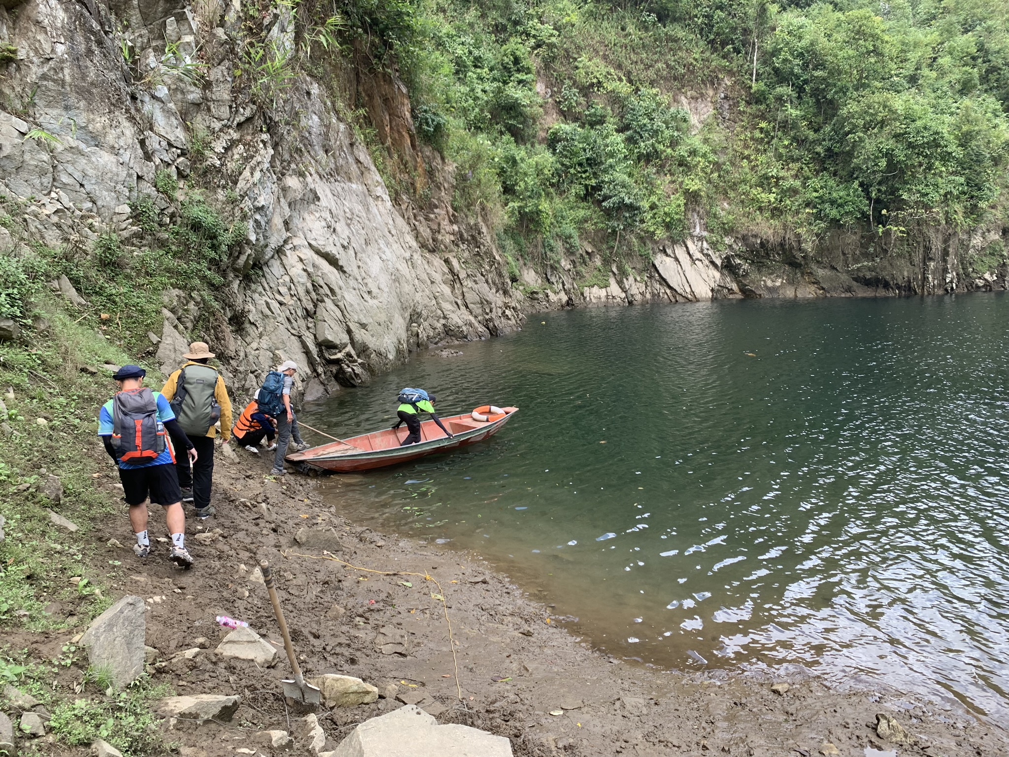 Tụi nó bắt đầu chính thức leo là khoảng 11h30 sau gần 30 phút để đi tàu nhỏ trên thủy điện để qua chỗ leo lý do là nếu đi đường đất liền thì sẽ mất thời gian rất nhiều vì đường khó đi nguy hiểm, di chuyển bằng thuyền tới điểm gần đó rồi đi lên là tiện nhất.