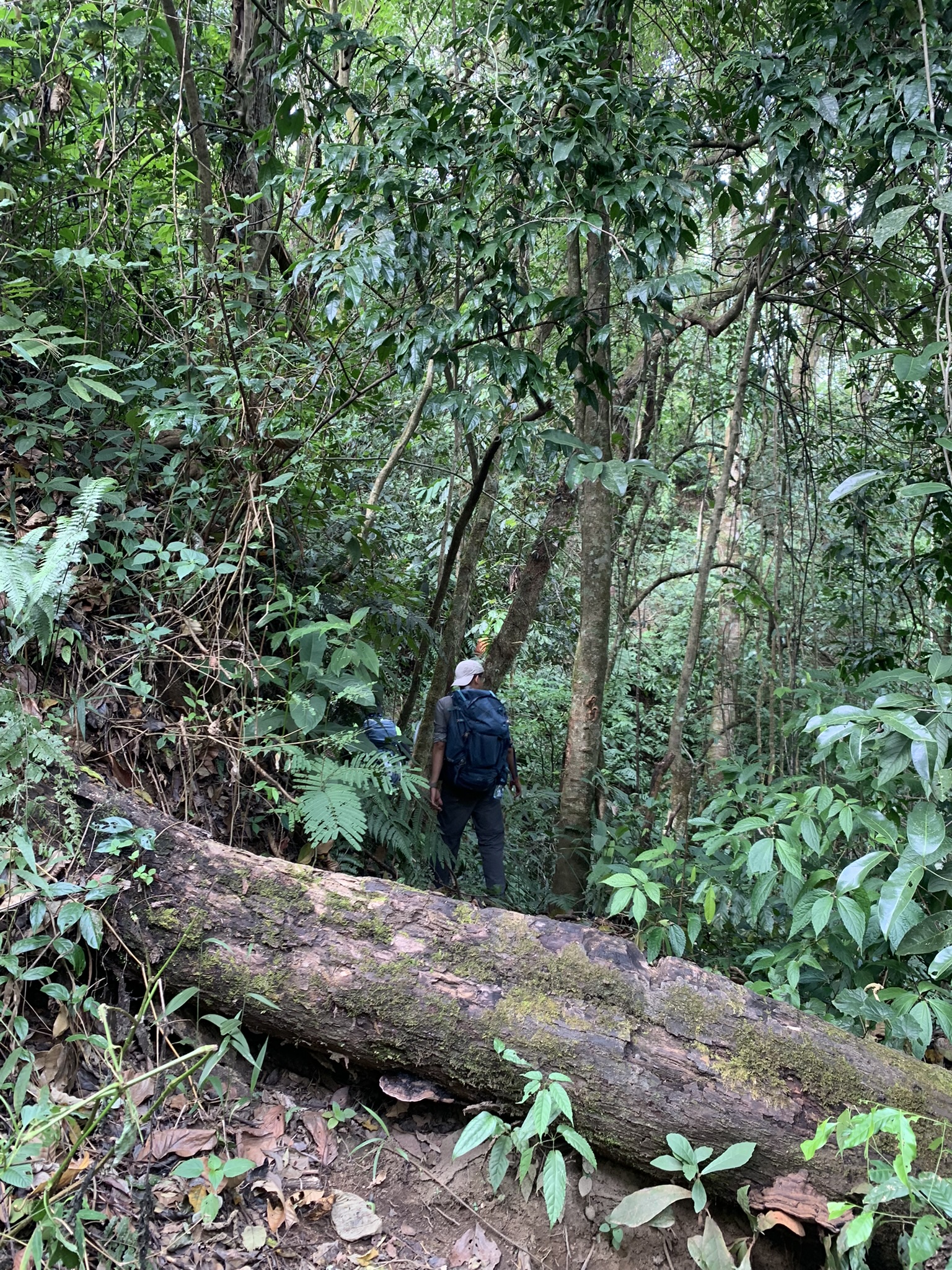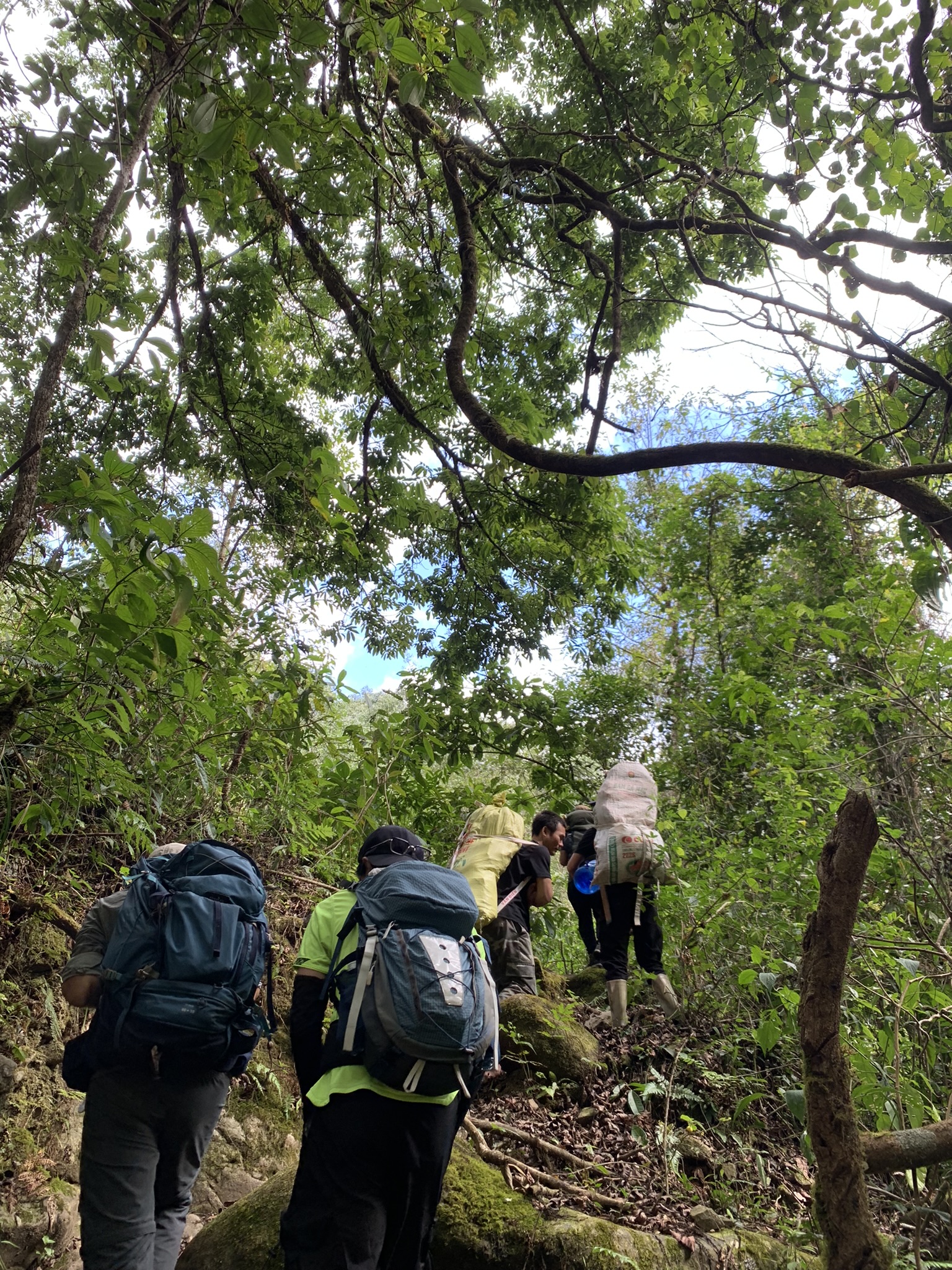4km đầu tiên đi xuyên rừng nhiệt đới rồi chuyển qua địa hình cây cỏ thấp phủ bởi dương xỉ, cỏ lau, đâu đó là những bụi đỗ quyên và sim rừng dọc trên đường đi. Địa hình cây cỏ nên người dân thả bò rong rất nhiều, dấu hiệu cho điều này là shit khá nhiều.