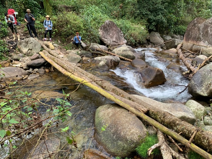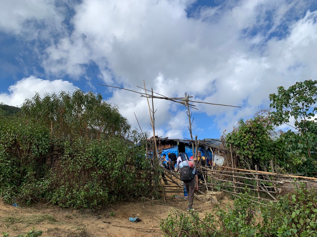 Càng lên cao càng lạnh, quang cảnh xung quanh hiện ra ngày càng rõ nét hơn, núi đồi trùng điệp trải dài hết tầm mắt. Ngôi nhà gỗ dựng lưng chừng đồi, cửa thì để mấy thanh gỗ chặn lại, phải nhảy qua mới vào sân được, nó nghĩ có lẽ là chặn động vật thôi chứ ở đây mà trộm gì nổi, nếu nhìn xung quanh thì thật sự rất đẹp nhưng có 1 ngôi nhà duy nhất nghĩ cũng rợn người. Ở đây chỉ có 2 Ông Bà già sống, con cháu sẽ mang đồ ăn lên cho ông bà mỗi ngày. Ở đây nghe rằng có rất ít công việc nếu làm vụ mùa xong, rảnh rỗi mọi người phê pha theo cái nghĩa đen của nó, họ trồng cần và sử dụng luôn. Ngồi nghĩ chút tại nhà ông bà già cũng quá 15h45, tụi nó bắt đầu 4km còn lại men theo đường mòn xuyên rừng nguyên sinh dọc đường sông để tới lán. Đoạn này khá dễ dàng chỉ có vài chỗ băng qua suối thông ra sông, hơi sình bùn một chút nhưng không sao. Khoảng 18h20, tụi nó đã tới được lán.