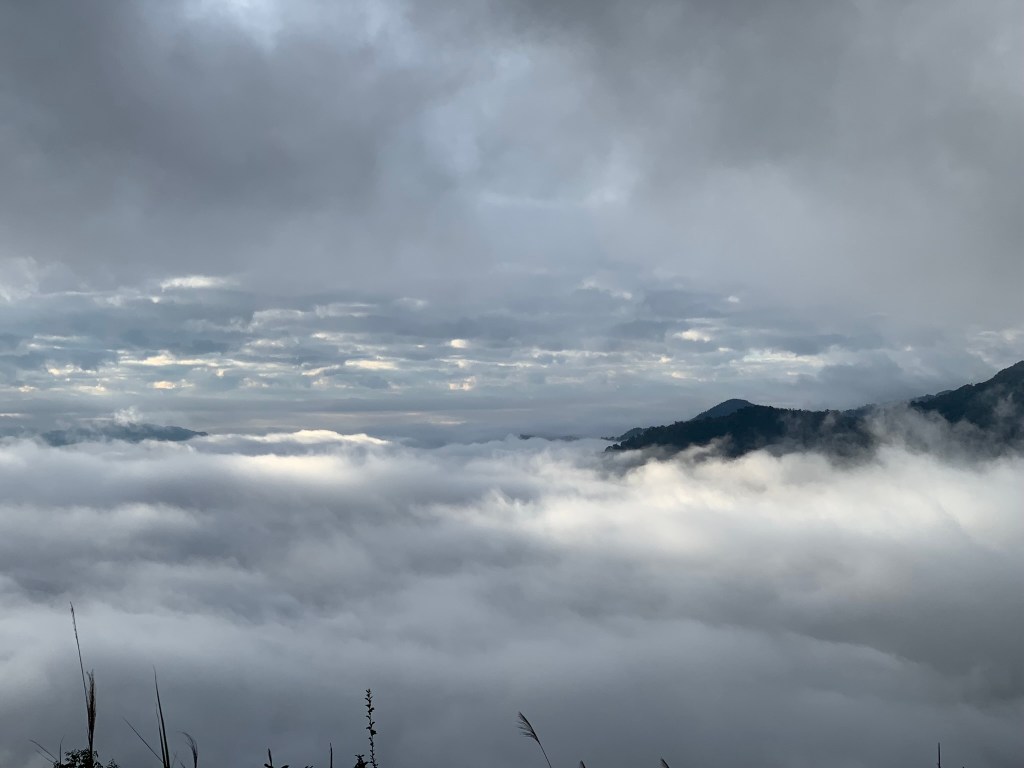 Chuẩn bị leo con dốc thứ 3 đã hơn 9h, mặt trời cũng bắt đầu chiếu những ánh nắng đầu tiên, mọi thứ hiện ra một cách rõ nét hơn, một biển mây ngay dưới chân tụi nó.