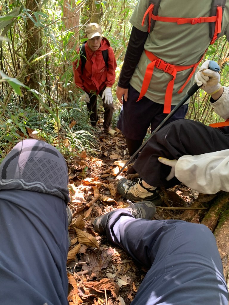 Đi xuống núi tụi nó được chia làm 2 nhóm: nhóm khỏe mạnh (3 người) đi tiếp qua cột mốc biên giới 42 và nhóm “hơi” khỏe (6 người) thì đi theo đường cũ mà về lại lán, nhưng sau đó nó lại đánh rơi vài nhịp ở đâu đó mà chỉ còn 3 đứa cùng 2 anh porter.