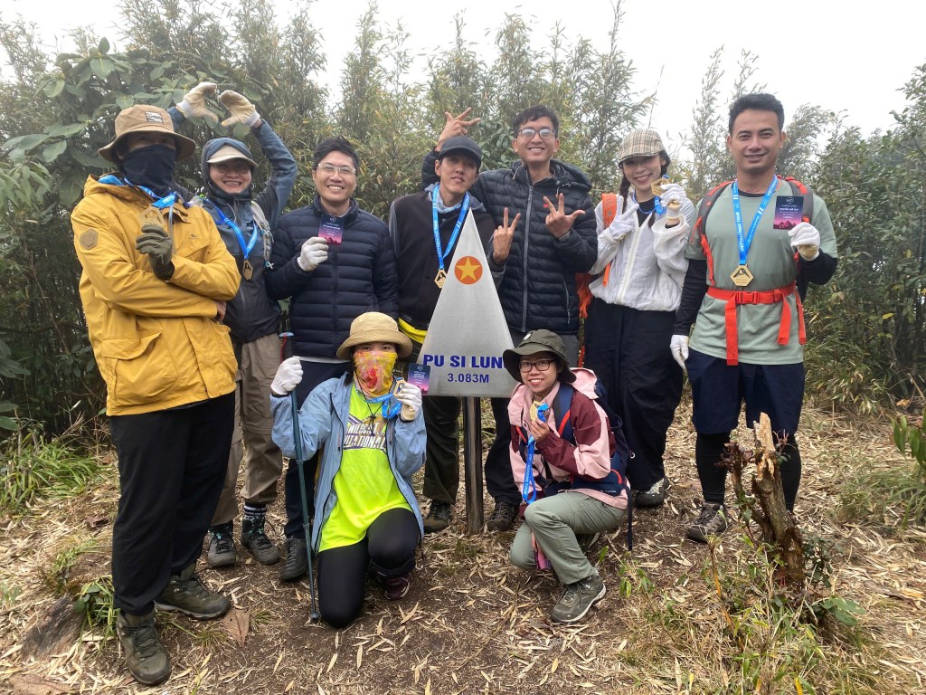 Ăn uống no nê rồi, mọi người tiến lên đỉnh chụp vài bức coi như kỉ niệm leo núi Pusilung.