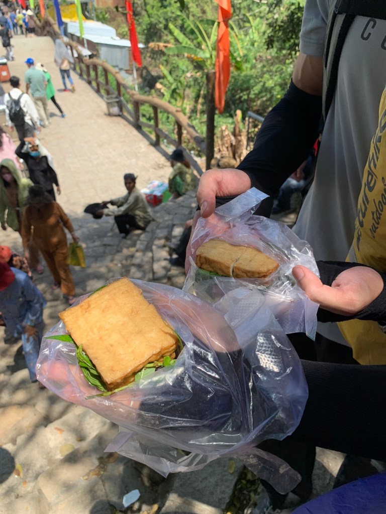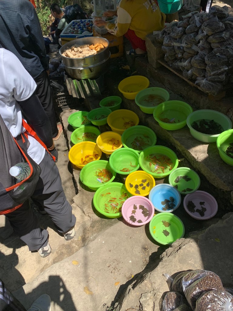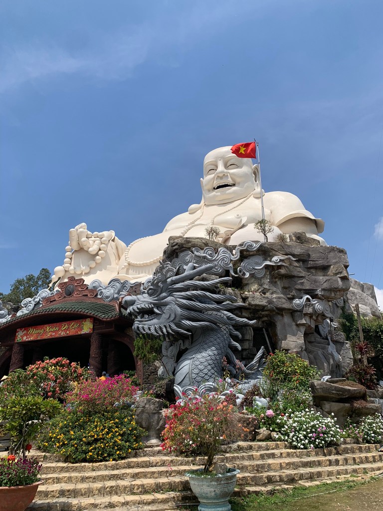 Chúng tôi dạo quanh ăn bánh lọt, tàu hủ chà bông quẹt chút tương, chả chay, đứng trên cầu xem cá tranh nhau ăn ở hồ Thủy Liêm, đi dọc hồ hướng về tượng Phật Di Lặc, cuối cùng chúng tôi di chuyển qua chùa Vạn Linh.