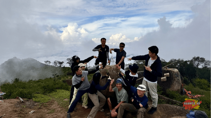 Đi xuống ¼ gặp 1 cặp đôi đang đi lên, theo chia sẻ thì 2 bạn bắt đầu leo lúc 8h sáng kiểu tập chạy trail chuẩn bị cho giải đấu nào đó; Xuống ⅓ gặp 1 cặp khác đang đi xuống, anh chị chia sẻ bắt đầu leo lúc 6h sáng mục tiêu đi 20km tức 2 lần lên xuống núi. Hiện tại anh chị đang đi xuống hoàn thành vòng 1, khi nhóm đi tới ⅔ đường xuống thì gặp anh chị đang leo lên. Chỉ biết há hốc mồm thán phục, quá đỉnh. Nó nghĩ không biết lúc mình nhiêu đó tuổi có còn sức để leo như anh chị không (nó nghĩ anh chị cũng U60)