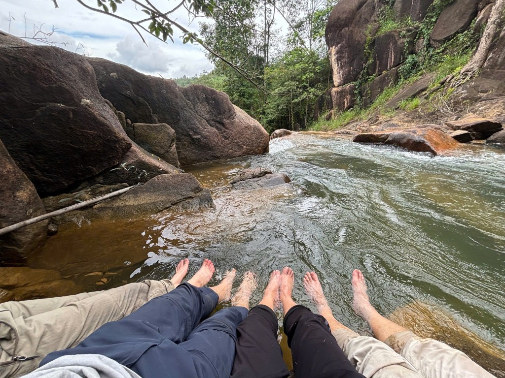 Quăng xe, vượt qua rẫy cà phê của người dân, tiếng thác đã kế bên..ơ sao thác nhỏ vậy, nó nhìn lên thì phía trên vẫn còn những tầng khác, nó cùng 3 thành viên trong nhóm tách ra di chuyển lên phía thượng nguồn, đi tới tầng thứ 5,6 thì leo không nổi nữa, lội xuống để tìm chỗ tắm nhưng nước chảy quá siết chỗ ngày chỉ để chân ngâm và cho tụi cá rỉa đống da chết thôi.