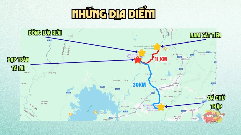 Mình đã có nhiều chuyến đi tới Nam Cát Tiên, ở lại trong Bàu Sấu cũng đâu đó 3 lần; nhiều lúc nghĩ mình cũng pro vip cung đường này lắm rồi cho tới khi phát hiện ra vẫn còn thiếu 1 mảnh ghép nữa đó là khu vực Tà Lài – cách vườn quốc gia khoảng 10km. Nếu đi từ vườn quốc gia cũng tới được cây Kơ Nia rồi tới rào chắn phân định địa giới rừng và khu dân cư không thể vượt qua được. Đó là lý do mình quyết tâm có chuyến đi Tà Lài này và để chuyến đi có nhiều không gian và hoạt động nên tụi mình đã sắp xếp chuyến đi như sau: