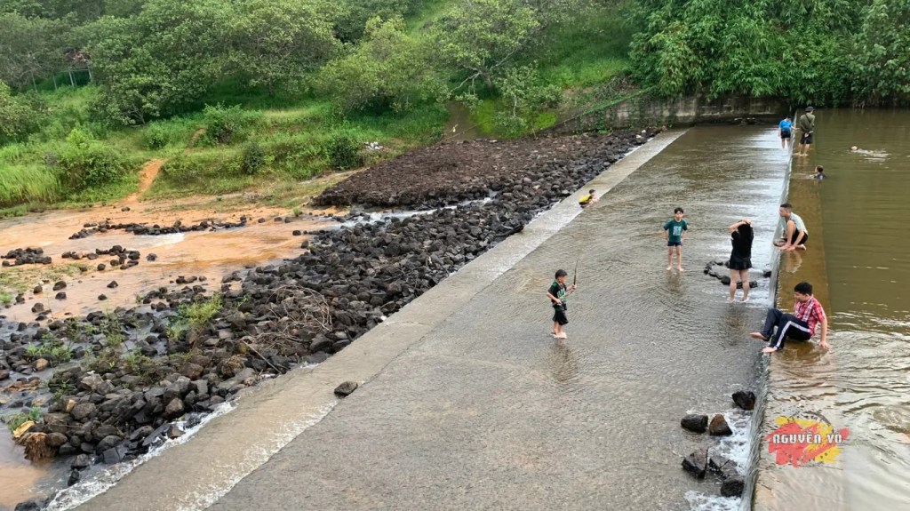 Như bao lần khác thì mọi người đã dậy từ sớm, ra đập tắm rửa, rồi nhìn hồ trong vắt, còn đám sương vẫn còn lờ mờ bao lấy mặt hồ, chỉ sợ có con gì xuất hiện thôi. Có một đám hoa gì đỏ đỏ theo dòng mà chảy rơi xuống con đập tràn, chắc cây lộc vừng nào đó bên bìa rừng sau cơn mưa đêm qua làm rơi vài đóa hoa tô thêm chút sắc màu.