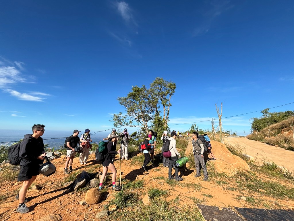 Nó thở dài, thì ra đây là lý do chẳng có ai đi lên sau nó để cắm trại ở lại qua đêm, trên đây còn bãi nào cắm đâu. Vừa than thở, vừa dựng lều thì có một nhóm 3 bạn nam xuất hiện nói rằng tụi mình cắm ở chỗ khác, vì chỗ này gió dữ lắm. Mà bãi nào thì bạn không nói, kệ bạn, tụi mình cắm ở đây thôi. Và đó cũng là những con người cuối cùng đi lên tụi mình có thể nhận biết được.