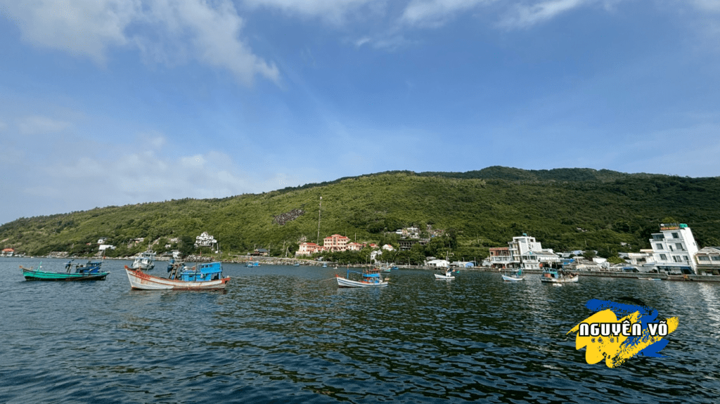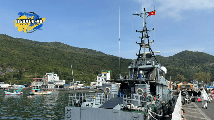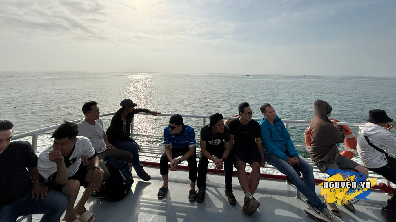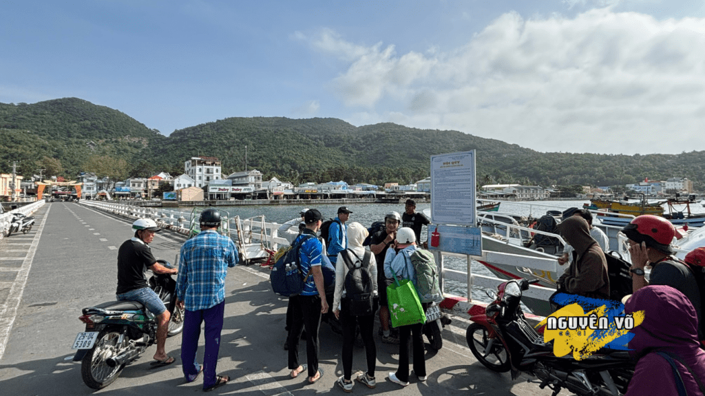 Vừa bước xuống tàu, sắc xanh của biển, xa xa sắc xanh của cây, phía trên đầu là sắc xanh của trời, những màu sắc phân định rạch ròi không mờ ảo, quyện vào nhau, mờ ảo của đô thị Sài Gòn 1h trưa đầy nắng. 1 chiếc tàu màu đen của quân đội đang đậu bên tay trái khá hầm hồ, chưa kịp tìm chỗ thuê xe máy di chuyển thì đã có mấy anh xuất hiện đưa xe tại chỗ, ngả giá nhanh như chớp. 150k cho 2 ngày, thuận tiện. Mà nghĩ cũng đúng, có một đường lên ai mà chẳng lên đây, giờ này, ra đây làm ăn là đúng rồi.