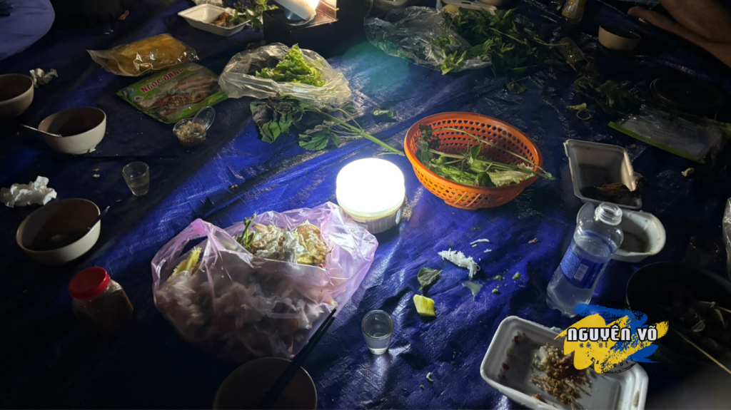 Phía xa sấm chớp cứ 10 giây lại chớp 1 lần làm sáng cả bầu trời, có khi nào mưa không? Ngồi chờ hoài vẫn chưa mưa mà đồ ăn thức uống đã hết, thôi nghỉ ngơi. Một ngày cũng đã quá dài với mọi người rồi. Lều chỉ cách con sóng vào bờ chỉ 5m, vừa nằm vừa nghe tiếng rì rào của biển cả, mấy câu thơ của Xuân Quỳnh hiện lên trong đầu, sao mà xưa bả có thể viết về tình yêu hay đến vậy “Ở ngoài kia đại dương; Trăm nghìn con sóng đó; Con nào chẳng tới bờ; Dù muôn vời cách trở.”