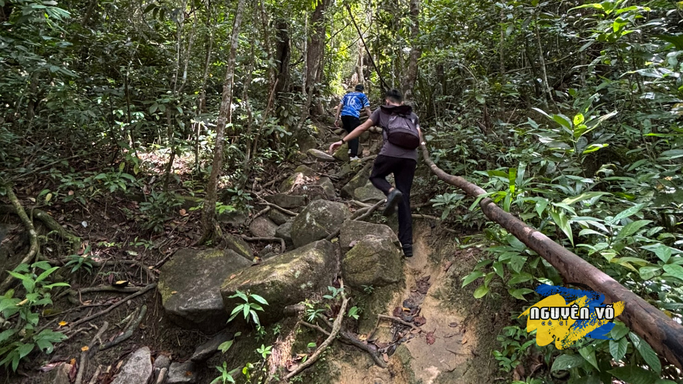 Trưa nắng chói chang mà nhóm tới trước, có 5 người ngồi ngoài tảng đá nãy giờ cũng nửa tiếng. Tôi cũng xuống coi đi tới được đâu, ngắm nghía qua lại chốt chỉ nên đứng chỗ tảng đá đi chút nữa là về với ông bà.