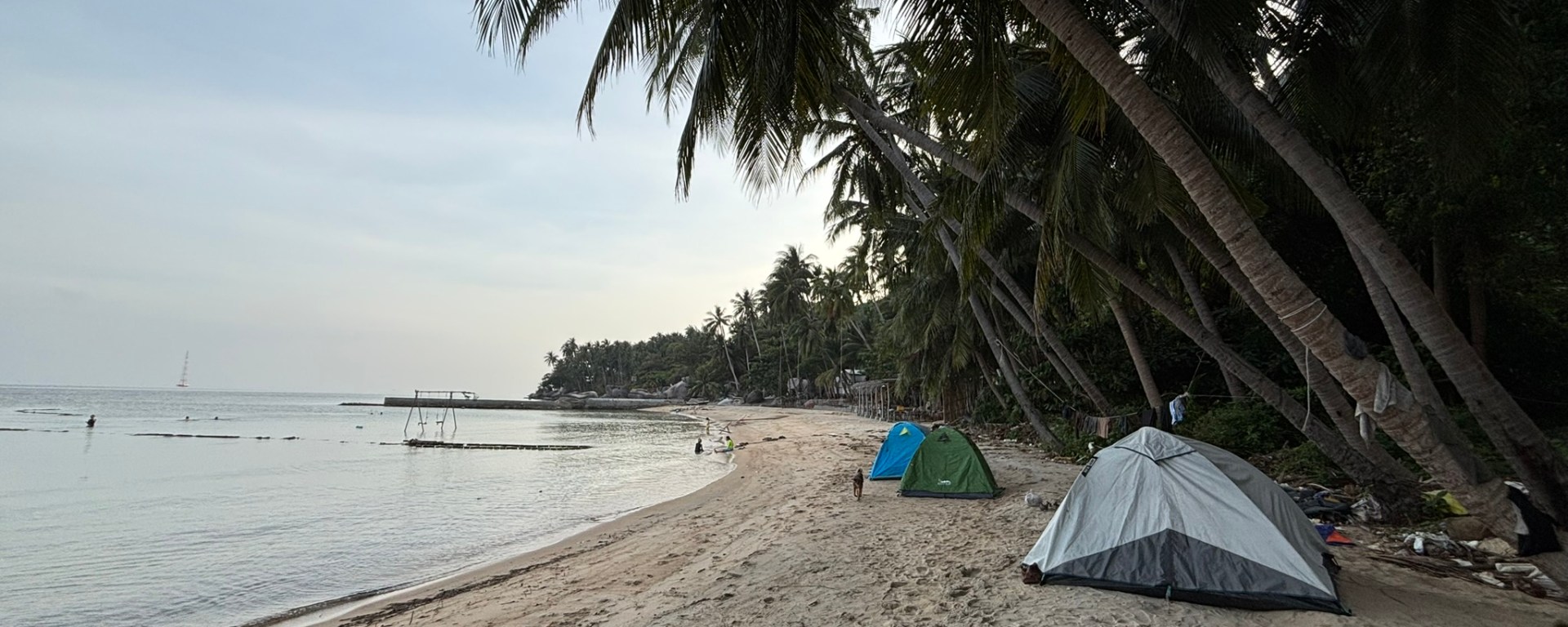 Có Tân đi công nhận đỡ mệt cho nhóm, lên hết rồi chỉ đi theo thôi. Cả nhóm di chuyển đến Bãi Bàng, khi đã đi hết đảo phải công nhận Bãi Bàng này là bãi biển đẹp nhất cả hòn đảo, vibe tropical island đúng nghĩa, những hàng dừa vươn mình nghiêng về phía biển. Tụi tôi cắm trại bên bãi biển này tối nay, anh chủ bãi nói rằng: “mấy chú Sài Gòn ra đúng không”, “sao anh biết”, “chỉ có mấy bạn Sài Gòn mới thích kiểu này” có một sự quy chụp nào ở đây không, thôi kệ dù sao thì cắm lều bên bãi biển đẹp nhất đảo với giá 150k một lều bao luôn chỗ vệ sinh kèm nhờ vả, xin xỏ thì quá ổn áp rồi.