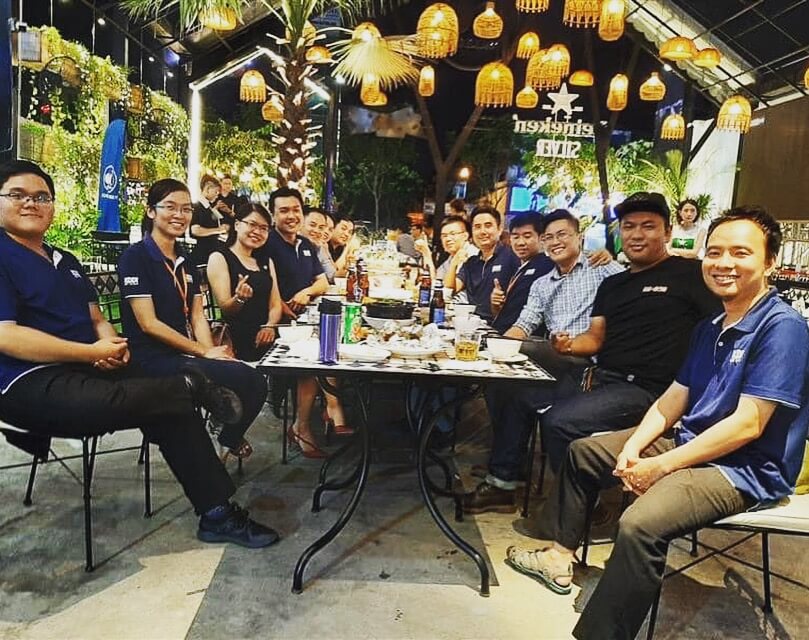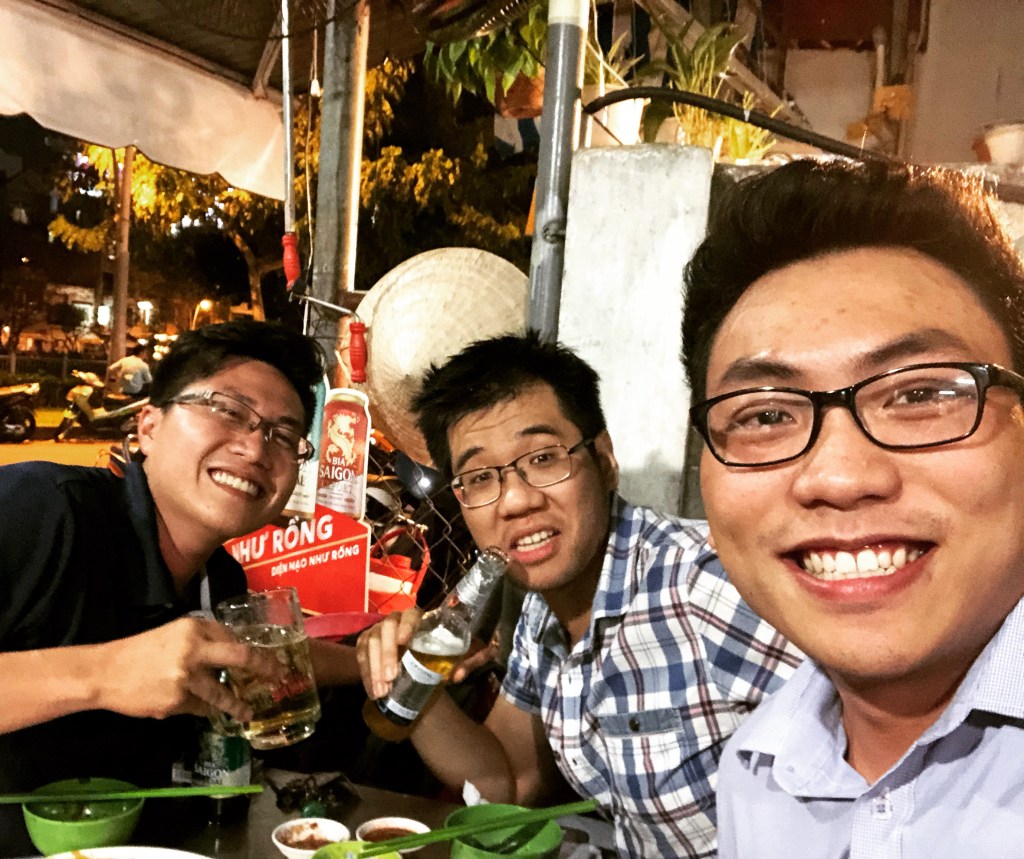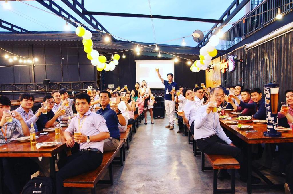 Công việc nhiều làm ai trong công ty cũng điên cuồng, nên khi có dịp ai cũng chơi hết mình. Mình thích cảm giác đó, cảm giác thoải mái để ngồi uống và nói chuyện với mọi người về những điều khác không phải về công việc. Nói chứ mình cũng thích bia kaka, tiệc chỉ là một lý do để uống bia nhiều hơn thôi.