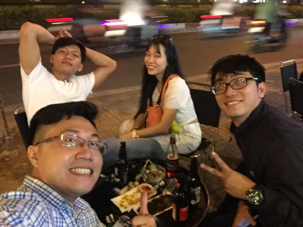 Bây giờ là 11:30 khuya nhóm ngồi lề đường checkin. Nhìn lại nhóm này là bạn nhậu của nhau, đôi khi mọi người gặp nhau do gì ta? Chẳng biết, thôi ngồi được với nhau là vui rồi kk.